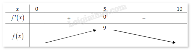Đặt \(f(x) = - {x^2} + 10x - 16\), ta có \(f'(x) = - 2x + 10 = 0 \Leftrightarrow x = 5\).