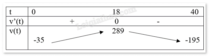 Từ bảng biến thiên, ta thấy trong khoảng (18;40) giây, vận tốc tức thời của chất điểm giảm.