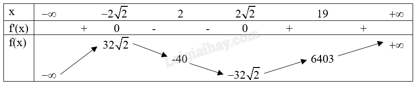 d) Sai. Hàm số f(x) có giá trị nhỏ nhất trên [2;19] bằng \( - 32\sqrt 2 \).