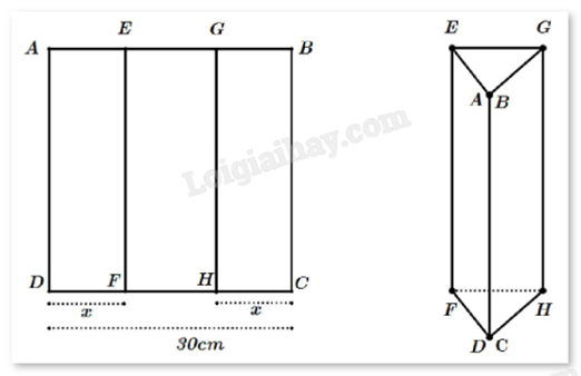 Thể tích khối lăng trụ là: \(V = {S_{DHF}}.EF = 30\sqrt {15(15 - x)(15 - x)(15 - 30 + 2x)} \)