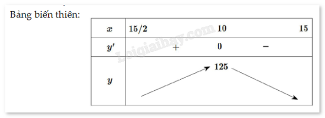 \(f'(x) = 0 \Leftrightarrow \left[ {\begin{array}{*{20}{c}}{x = 10}\\{x = 15}\end{array}} \right.\)