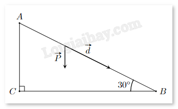 Góc giữa hai vecto \(\overrightarrow P \) và \(\overrightarrow d \) là: \(\widehat {CAB} = {90^o} - \widehat {ABC} = {90^o} - {30^o} = {60^o}\).