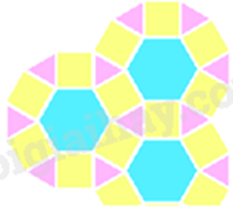 Trong hình trên, ta thấy có các loại gạch hình tam giác đều (màu hồng), hình vuông (màu vàng), hình lục giác đều (màu xanh).
