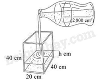 Thể tích phần nước sau khi rót hết vào bể chính là thể tích của chai nước. Do đó thể tích phần nước trong bể là \(2000c{m^3}\).