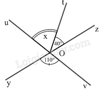 b) Vì hai góc \(\widehat {yOv}\) và \(\widehat {uOz}\) là hai góc đối đỉnh nên \(\widehat {yOv}{\rm{  =  }}\widehat {uOz} = 110^\circ \)