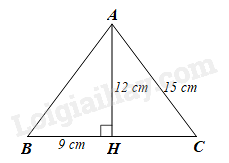 Cho tam giác \(ABC\) có đường cao \(AH.\) Biết \(AC = 15\;\;{\rm{cm}},\,\,AH = 12\;\;{\rm{cm,}}\,\,BH = 9\;\;{\rm{cm}}.\) Hỏi tam giác \(ABC\) là tam giác gì?