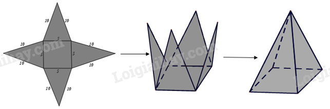 Vẽ, cắt và gấp mảnh bìa như đã chỉ ra ở hình bên dưới để được hình chóp tứ giác đều.