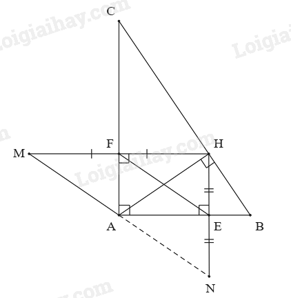 b) Trên tia đối của tia FH lấy điểm M sao cho FH = FM. Trên tia đối của tia EH lấy điểm N sao cho EH = EN. Chứng minh tứ giác AEFM là hình bình hành.