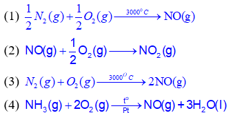 (1) là phản ứng enthalpy tạo thành chuẩn của NO
