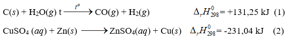 Phản ứng (1) thu nhiệt và phản ứng (2) tỏa nhiệt.