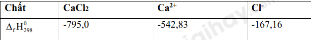 \({\Delta _r}H_{298}^0 = {\Delta _f}H_{298}^0(C{a^{2 + }}) + 2.{\Delta _f}H_{298}^0(C{l^ - }) - {\Delta _f}H_{298}^0(CaC{l_2})\)