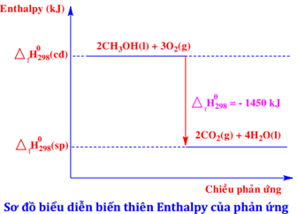 \(2C{H_3}OH(l) + 3{O_2}(g) \to 2C{O_2}(g) + 4{H_2}O(l){\rm{ }}{\Delta _r}H_{298}^0 = - 1450kJ\)