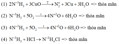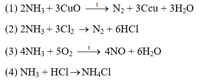 Các phản ứng NH3 thể hiện tính khử là: (1), (2), (3)