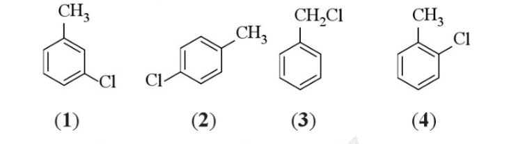 Chất hữu cơ nào sau đây là sản phẩm chính của phản ứng giữa toluene với Br2 đun nóng (có mặt bột Fe, tỉ lệ mol 1: 1)?