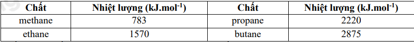 Khi đốt cháy 1 mol các chất sau đây giải phóng ra nhiệt lượng (gọi là nhiệt đốt cháy) như bảng sau: