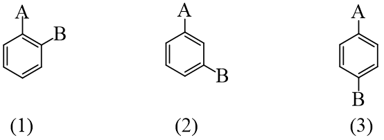 Cho ba đồng phân của hydrocarbon thơm có hai nhóm thế A, B như sau: