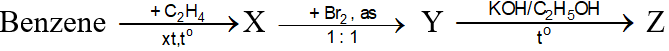 Y, Z lần lượt là 1-bromo-1-phenyletane và styren