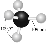 Mô hình phân tử methane được biểu diễn như hình bên.