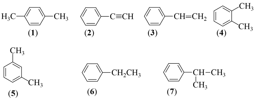 (1), (4), (5), (6) là các đồng phân cấu tạo của nhau vì có cùng CTPT C8H10.