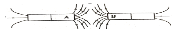 Ở bên ngoài thanh nam châm, đường sức từ có chiều đi ra từ cực Bắc, đi vào cực Nam. Vì vậy, cả đầu A và đầu B đều là cực Bắc.