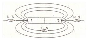 Căn cứ vào sự định hướng của kim nam châm đã cho, ta xác định được 1 là cực Bắc.