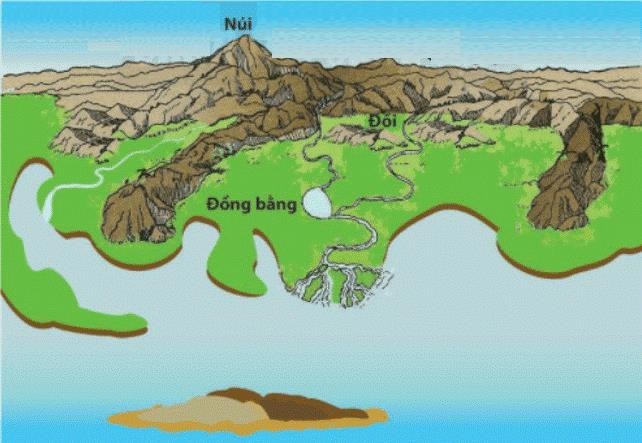 -  Một số dạng địa hình phổ biến: đồng bằng, đồi, cao nguyên và núi.