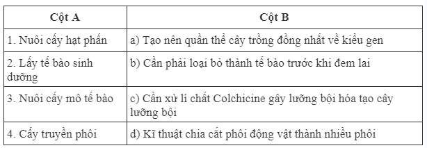 - Nuôi cấy hạt phấn hoặc noãn chưa thụ tinh: cần xử lí chất colchicine để tạo ra cây lưỡng bội.