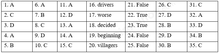 I. Choose the word that has different sound in the underlined part. II. Choose the word with a different stress pattern. III. Choose the best answer. IV. Write the correct form of the word given. V. Listen and decide if each statement is true or false or not given. VI. Read the passage and choose the best answer to each of the following questions. VII. Read the letter and choose the best answer to fill in each blank. VIII. Complete each of the following sentences using the cues given.