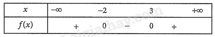 Câu 2: Bảng xét dấu sau đây là của tam thức bậc hai nào?