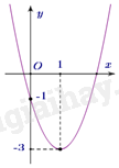 Tọa độ đỉnh \(I\left( {1\,\,;\, - 3} \right)\), ta có phương trình: \(\left\{ \begin{array}{l} - \frac{b}{{2a}} = 1\\a{.1^2} + b.1 - 1 = - 3\end{array} \right.\) \( \Leftrightarrow \left\{ \begin{array}{l}2a + b = 0\\a + b = - 2\end{array} \right.\) \( \Leftrightarrow \left\{ \begin{array}{l}a = 2\\b = - 4\end{array} \right.\).