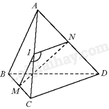 Suy ra: \(\left( {AB,CD} \right) = \left( {IM,IN} \right) = {180^0} - \widehat {MIN} = {180^0} - {120^0} = {60^0}\)