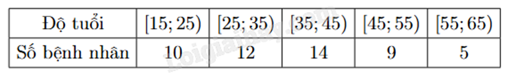 Trong một đề tài nghiên cứu về bệnh A, người ta ghi lại tuổi của bệnh nhân mắc bệnh này, số liệu thống kê được trình bày trong bảng sau: