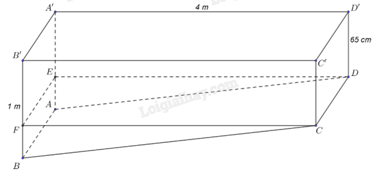 Ta có BB’ = 1 m = 100 cm; B’F = 65 cm; BF = BB’ – B’F = 100 – 65 = 35 cm; CF = 4 m = 400 cm.
