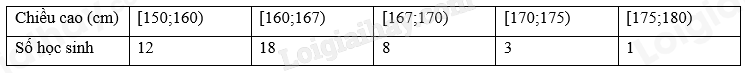 Cho bảng khảo sát về chiều cao học sinh trong lớp: