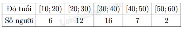 Số lượng người đi xem một bộ phim mới theo độ tuổi trong một rạp chiếu phim (sau 1 giờ đầu công chiếu) được ghi lại theo bảng phân phối ghép nhóm sau: