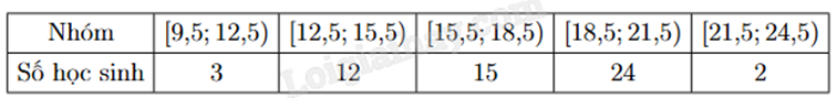 Tìm trung vị của mẫu số liệu ghép nhóm trên (kết quả viết dưới dạng số thập phân).