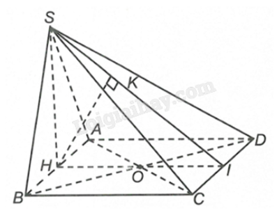 Ta có \(\left\{ \begin{array}{l}SH \bot CD\\HI \bot CD\end{array} \right. \Rightarrow CD \bot (SHI) \Rightarrow CD \bot HK\).