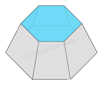 Cho một chậu nước hình chóp cụt đều (hình vẽ) có chiều cao bằng 3 dm, đáy là lục giác đều, độ dài cạnh đáy lớn bằng 2 dm và độ dài cạnh đáy nhỏ bằng 1 dm. Tính thể tích của chậu nước (tính chính xác đến hàng phần mười của \(d{m^3}\)).