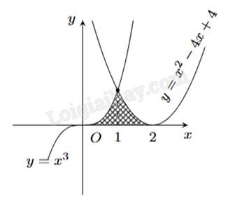 - Phần giới hạn bởi đồ thị \(y = {x^3}\), trục hoành, đường thẳng x = 0 và x = 1.