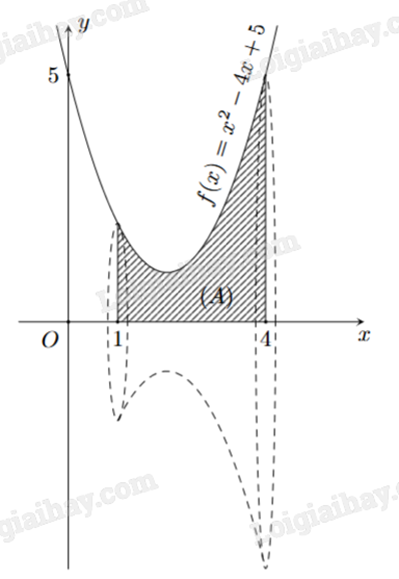 a) Sai. Hình phẳng (A) được giới hạn các đường \(y = f(x) = {x^2} - 4x + 5\), y = 0, x = 1, x = 4.