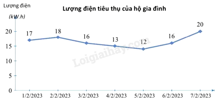 Lượng điện tiêu thụ mỗi ngày trong 7 ngày đầu tháng \(02/2023\) của một hộ gia đình được cho ở biểu đồ sau: