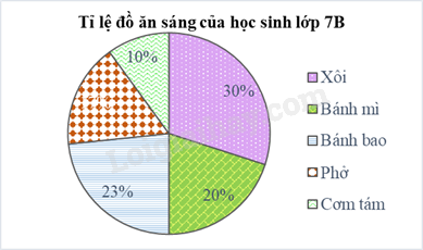 Biểu đồ sau đây cho biết tỉ lệ các đồ ăn sáng của học sinh lớp 7B vào ngày Thứ Hai.