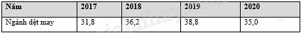 Dựa vào bảng số liệu sau, hãy cho biết trong năm 2019, ngành dệt may Việt Nam đạt kim ngạch xuất khẩu là bao nhiêu?