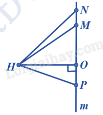 Đường vuông góc kẻ từ H xuống đường thẳng m là HO.