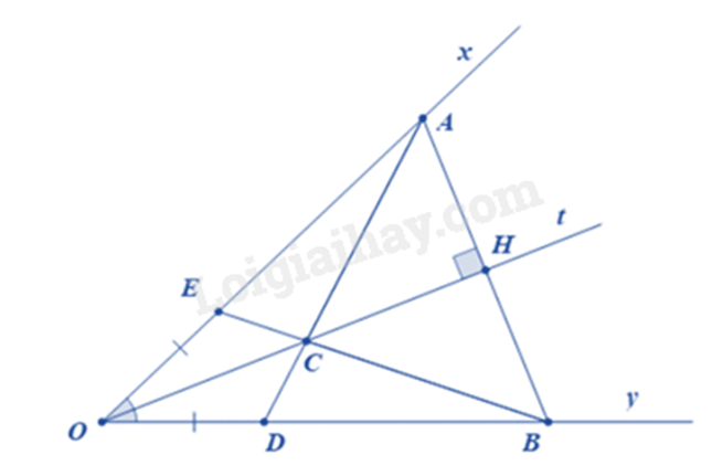 Cho góc xOy khác góc bẹt có Ot là tia phân giác. Qua điểm H thuộc tia Ot, kẻ đường vuông góc với Ot và cắt Ox và Oy theo thứ tự A và B.