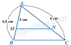 Suy ra \(\frac{3}{{4,5}} = \frac{{AN}}{6}\) hay \(AN = 6.3:4,5 = 4{\rm{\;cm}}\)