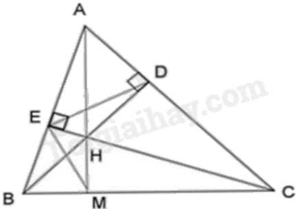 Cho \(\Delta ABC\) có các đường cao \({\rm{BD}}\) và \({\rm{CE}}\) cắt nhau tại \({\rm{H}}\). Chứng minh: