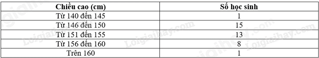 Cho bảng thống kê chiều cao của học sinh lớp 6A: