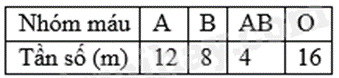 Trong môn Sinh học, một lớp 9 khảo sát về nhóm máu của các học sinh trong lớp. Kết quả khảo sát được trình bày như sau: