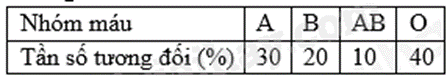 c) Tần số tương đối của nhóm máu AB là 30%.